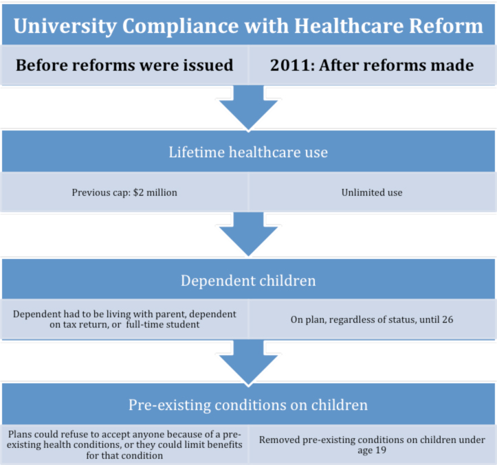 Several adjustments were made in July of 2011 to ensure compliance with new mandates. UA replaced the $2 million dollar lifetime healthcare benefit maximum with an unlimited lifetime maximum.