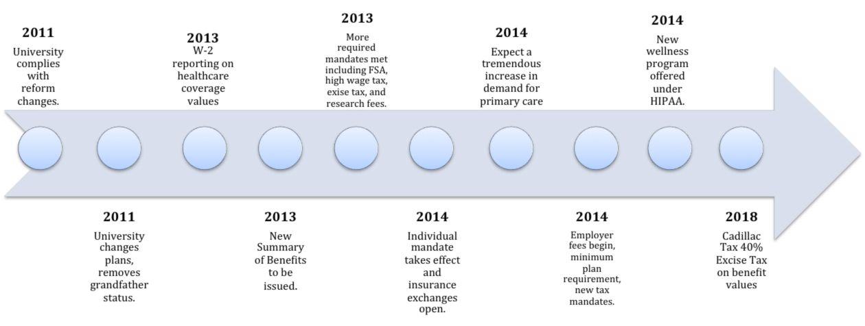 In order to lower costs and make healthcare more available, providers across the country have implemented many changes to current healthcare plans. UA has already complied with many of the healthcare mandates handed down from the federal government. Many more adjustments will be made in 2013 and through the next five years until 2018.