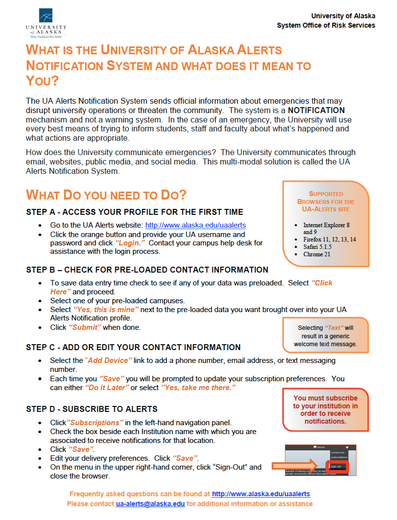 Frequently asked questions can be found at http://www.alaska.edu/uaalerts