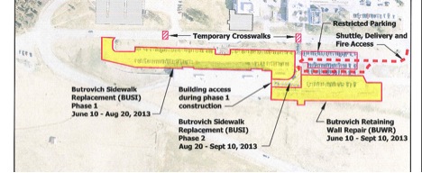 Summer construction for 2013 is underway. Butrovich is scheduled to begin a sidewalk renovation project and retaining wall replacement June 10, with completion dates of August 20 and September 10.