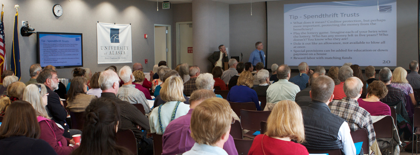 More than 100 Fairbanksans filled the Butrovich Board of Regents conference room on Thursday, May 15 to participate in an Estate Planning Seminar sponsored by the University of Alaska Foundation.