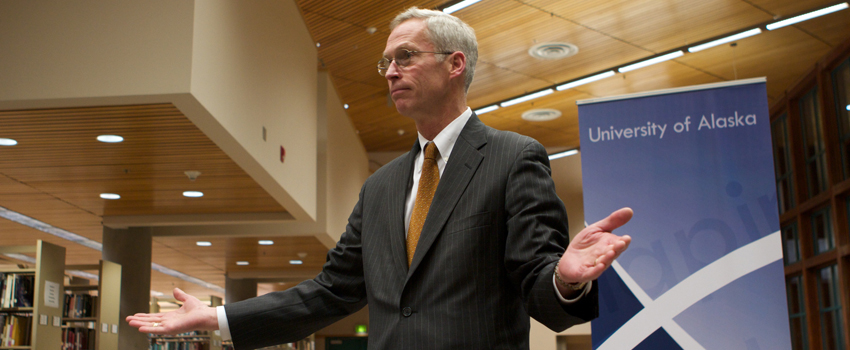 Following two years of state funding reductions, UA needs the time between now and fiscal year-end to consider carefully how to implement additional expected reductions while continuing to create success for the people of Alaska through wide access to cost-effective and high quality higher education. UA will soon begin work on an alternate budget proposal that will identify vertical rather than horizontal reductions. Many options will be explored and considered, including the preliminary recommendations from the Statewide Transformation Team report, administrative and academic program consolidation and elimination, and increased partnerships and outsourcing. The Board of Regents has asked University leadership to evaluate e-Learning, general education requirements, developmental education and teacher education during the budget process.