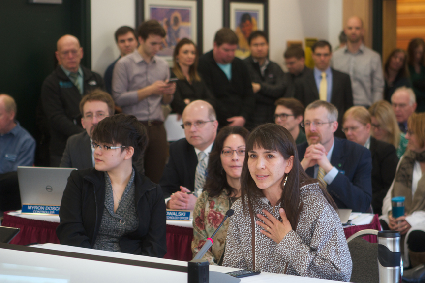 Members of the university community packed the house both days to provide public testimony. Many students spoke about the important opportunities they received at the university, in particular in undergraduate research, and in support of the programs for which they wanted to show support.