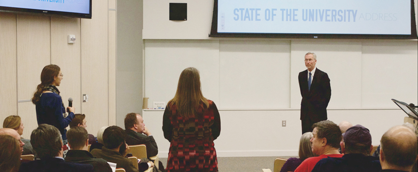 The 2017 State of the University Address will be given by President Johnsen on February 16 as part of the Juneau/State Chamber Business Round Table Luncheon at the Hangar in Juneau. Arrangements are being made to provide video streaming of the speech. The transcript will be available on www.alaska.edu by February 17.