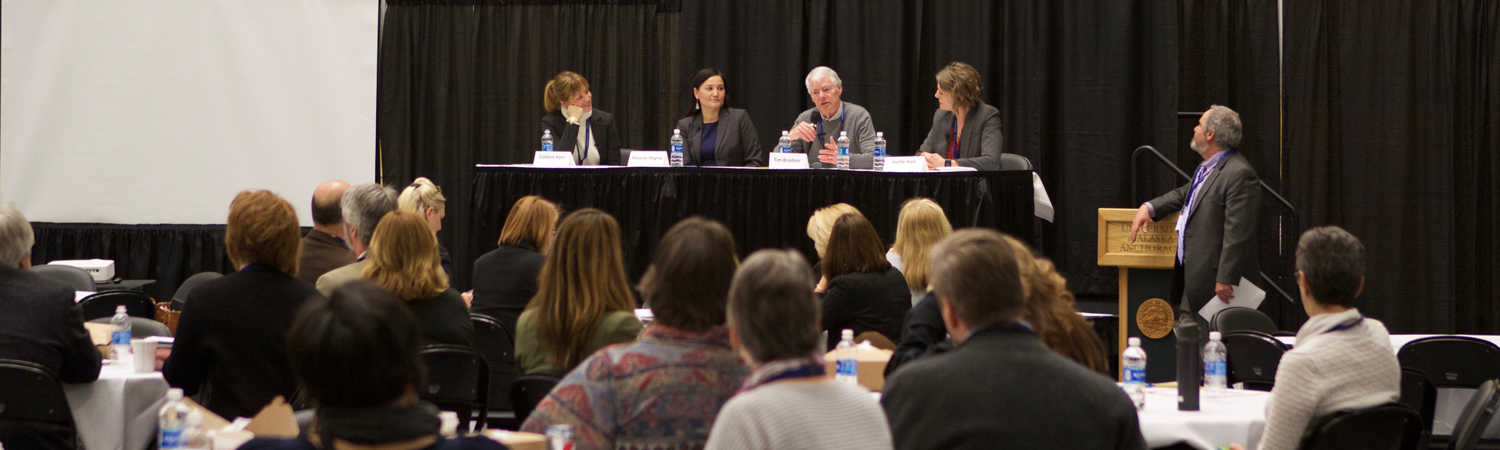 Academic and administrative leaders from every UA campus gathered January 18 to develop an outreach plan to deploy the university's message focused on the impact and importance of the university to Alaska. Discussions focused on the university's five goals: to contribute to Alaska's economic investment; provide Alaska's skilled workforce; grow our world class research; increase degree attainment; and operate more cost effectively. Guest speakers discussed advocacy and grassroots engagement strategies and provided advice regarding year-round communication and advocacy efforts. Participants helped create a common definition of what it means to create a culture that values education in Alaska. Work groups have been formed and will work on outreach activities over the coming year. The day was an informative and should prove to be impactful for many months to come.